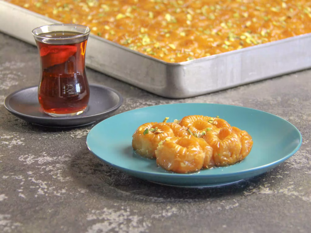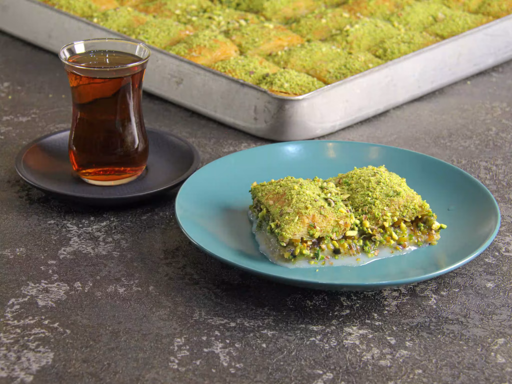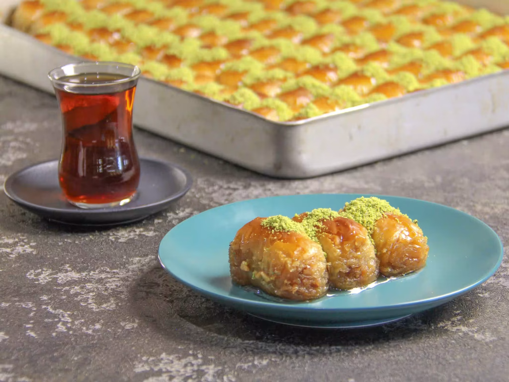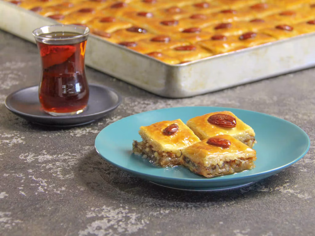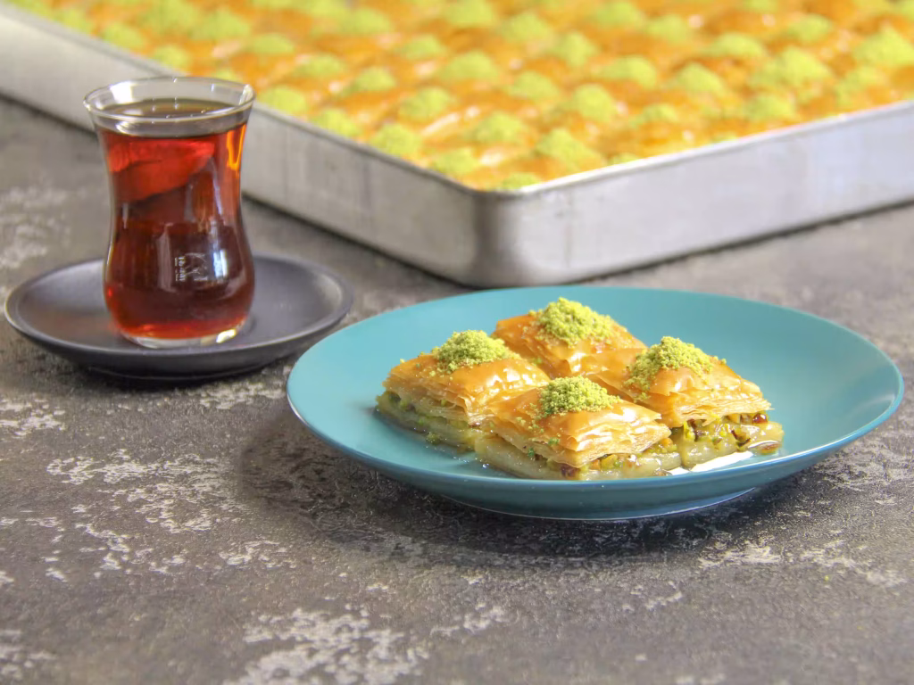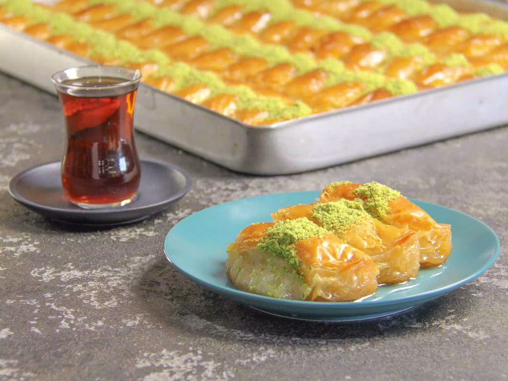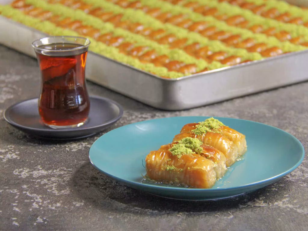 بیایید با باقلوا، لحظه ای شیرین و به یادماندنی بسازیم! همراه با یک فنجان چای اصیل، طعم های لذت سنتر را تجربه کنید و اجازه دهید این طعم ها شما را به سفری در دنیای شیرینی های ترکیه ای ببرند.